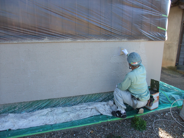 ※花壇を作り水やりをするため、防水を兼ねて腰下を吹付仕上げにしました。