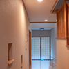廊下、階段、リビング、洋室… 家中いたる所に壁厚を利用した飾り棚を作りました。
